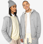 85% organic combed cotton/15% recycled polyester. Sherpa lined. French terry inner. Enzyme washed. Drop shoulder style. Straight fit. Two panel sherpa lined hood with self colour drawcord. Recycled metal eyelets and drawcord tips. Overstitching around the hood. Herringbone taped neck. Full length zip. Front pouch pockets. 1 x 1 ribbed cuffs and hem. Twin needle stitching. Tag free. Recycled polyester is made from post-consumer waste.